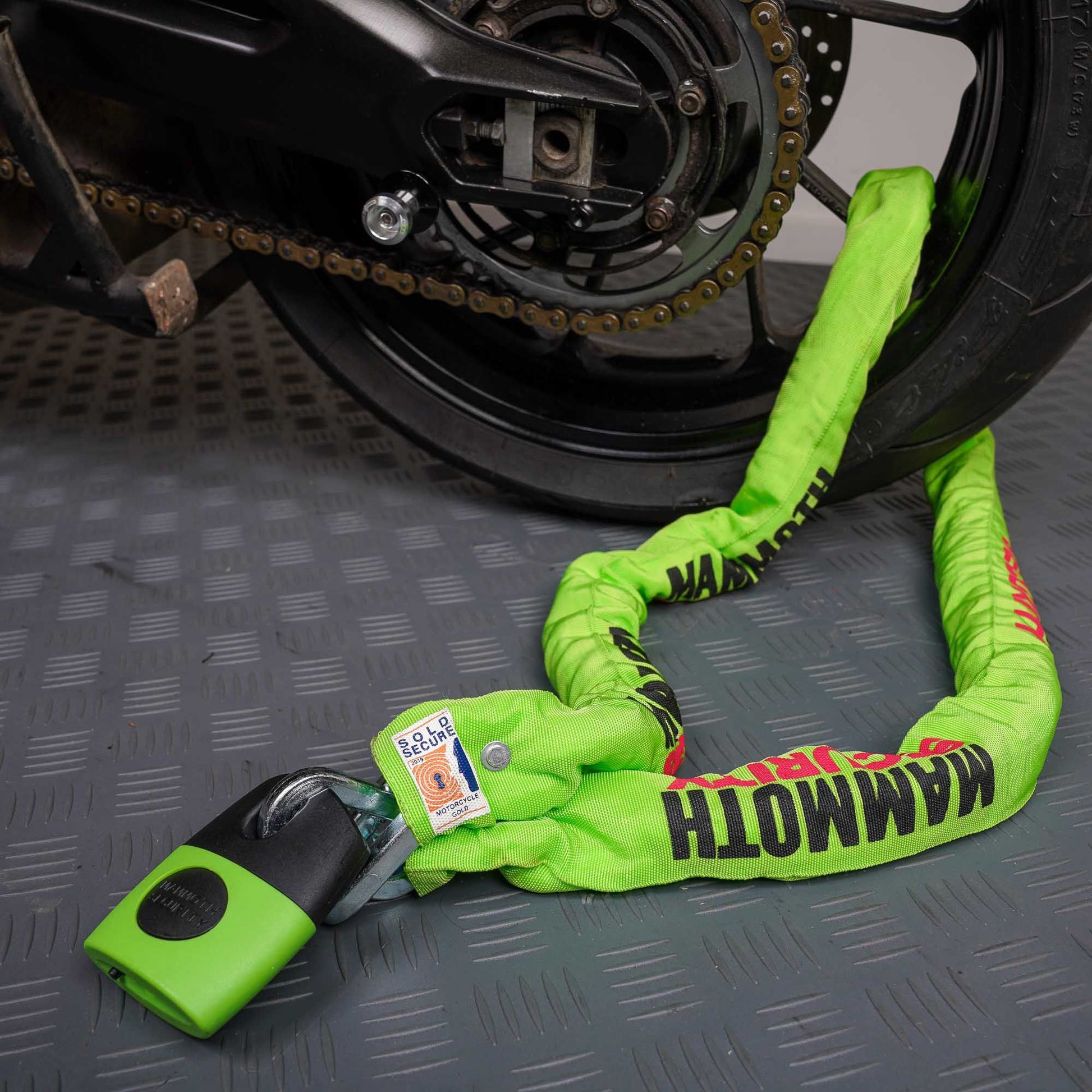 This Mammoth product has passed the Sold Secure Test Standard in categories Motorcycle Gold and Motor Scooter Gold and is included in the Sold Secure Approved Products List. Sold Secure products are evaluated using methods approved by the Police and Home Office, use of this product can reduce insurance premiums with participating insurers.