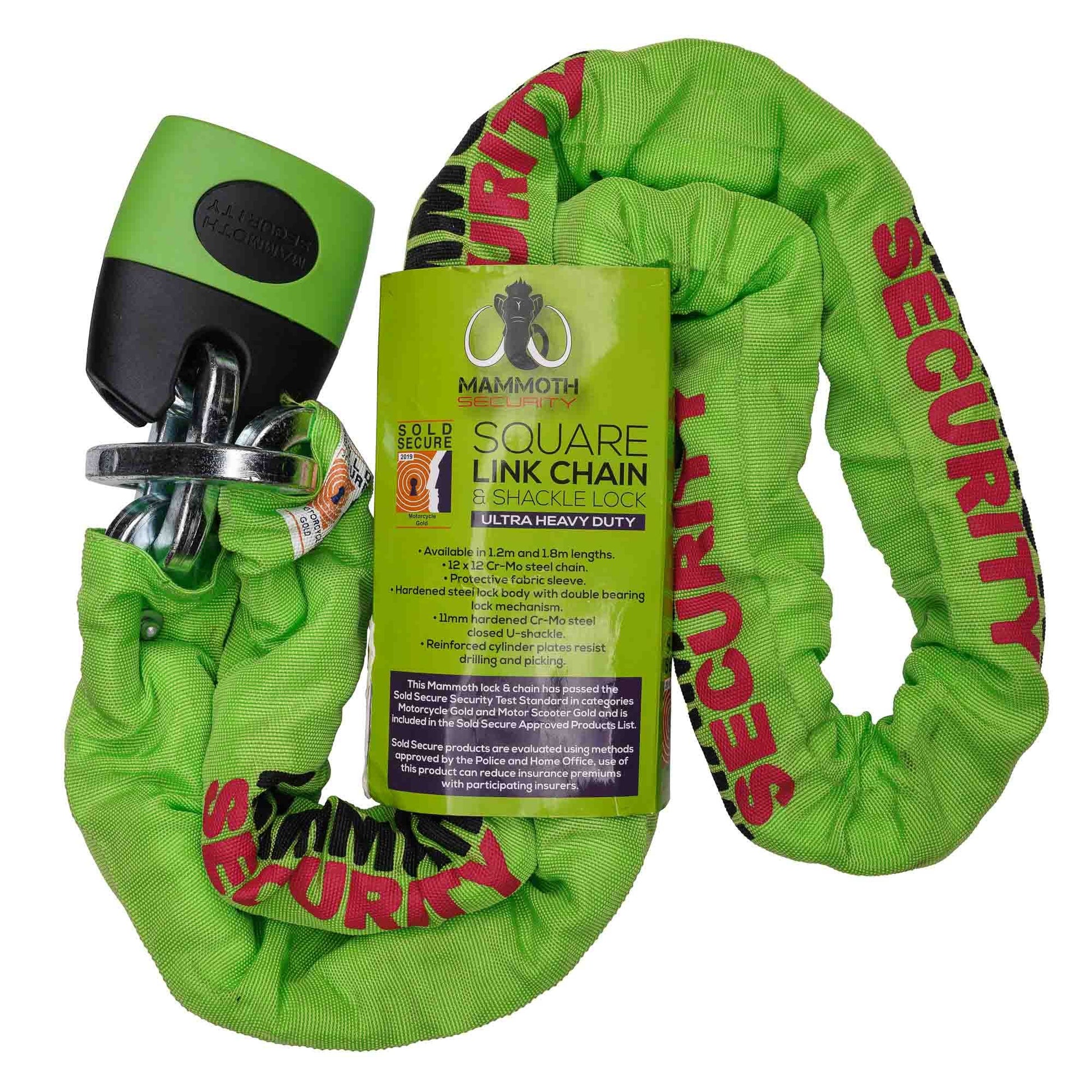 Mammoth Sold Secure Gold Approved 12mm x 1.8m Square Chain With Shackle Lock